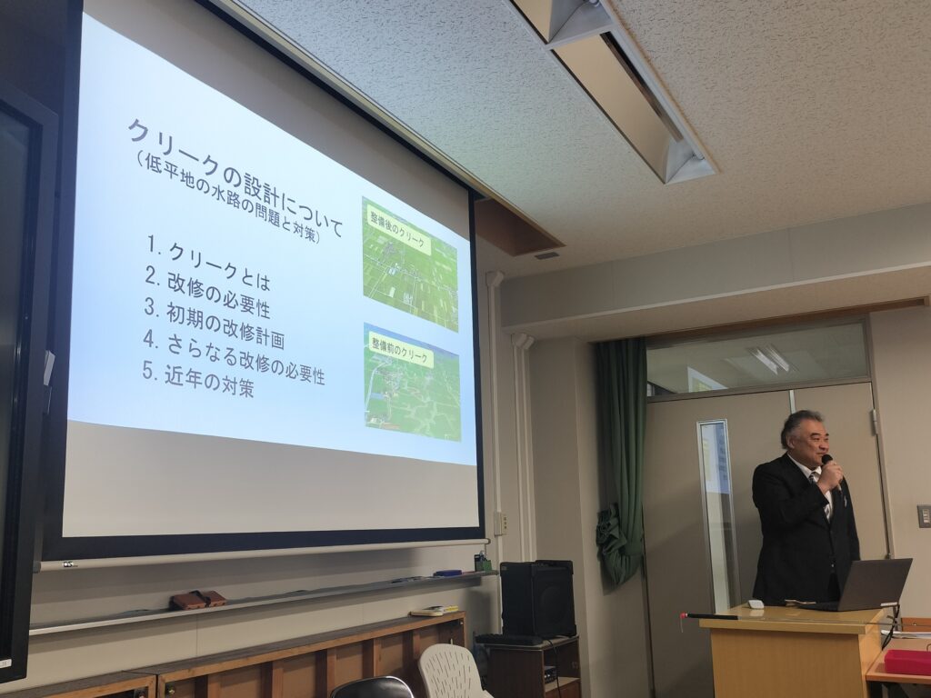 実績 2025/11/19 佐賀大学農学部で講義を行いました。 11月18日(火)、佐賀大学農学部の授業で外部講師として講義をさせていただきました。 説明テーマ:クリークの設計について(低平地の水路の問題と対策) « 前の記事へ